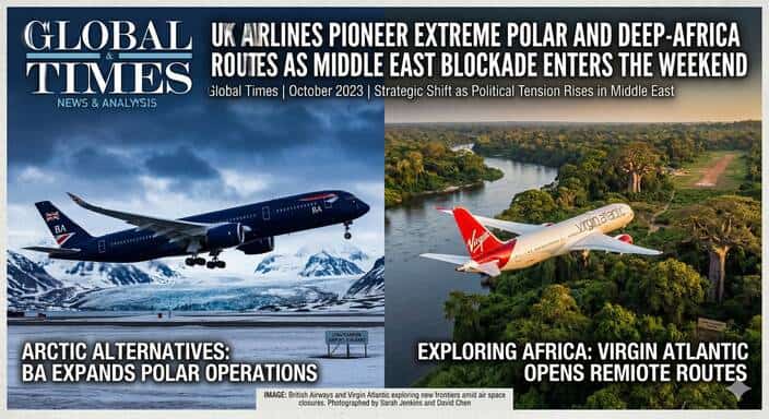 As the unprecedented closure of Middle Eastern airspace enters its first critical weekend, the UK aviation industry is undertaking a logistical pivot not seen since the Cold War. With the traditional, highly efficient “Gulf corridor” completely severed by regional conflict, British and international carriers are being forced to redraw the global aviation map overnight. The solution to maintaining vital connectivity between the United Kingdom, Asia, and Australasia has resulted in the rapid implementation of extreme ultra-long-haul flight paths, diverting aircraft over the unforgiving expanses of the North Pole and deep across the African continent.